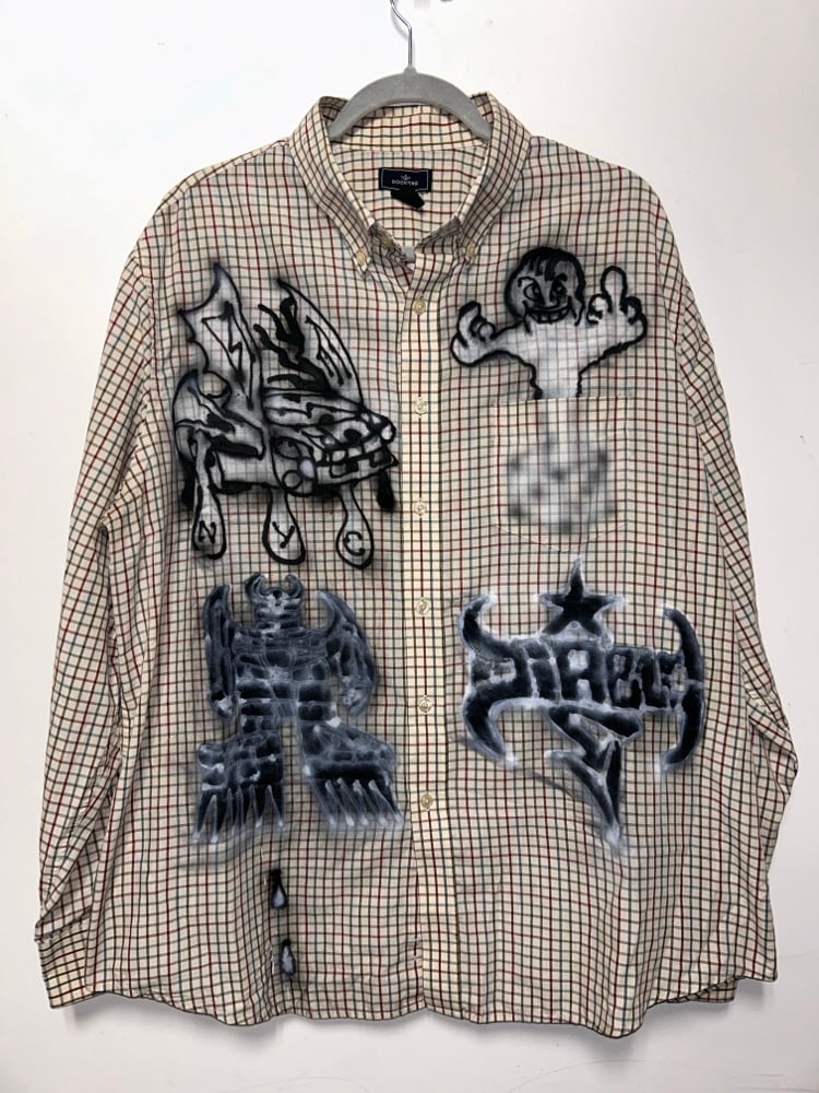 1/1 handmade airbrushed shirt. Size L. Ironed. Wash by hand or cold only.